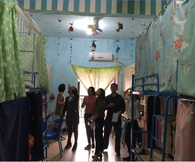 2016年4月20日下午,由工商管理系党总支书记陈凯带队,思政辅导员和社区辅导员等多人走访了工商管理学院学生宿舍,巡查“第十二届大学生社区文化节--宿·寝室比拼”宿舍装扮情况,并且进行了宿舍内的安全排查工作。