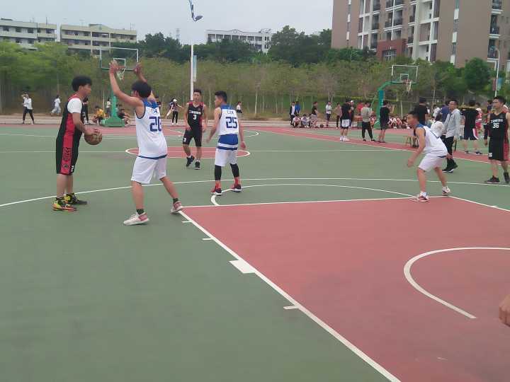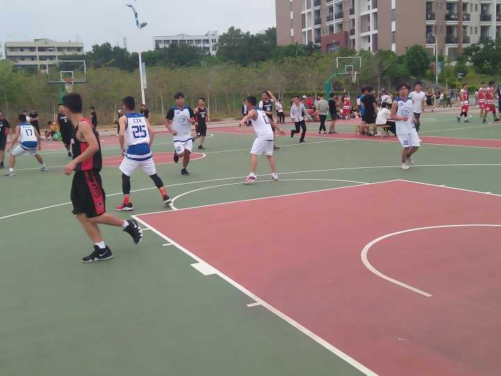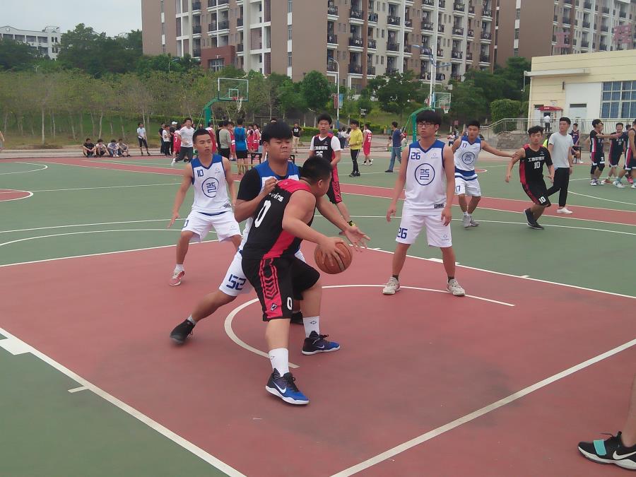 2018年5月8日开始在工程实训楼前橡胶篮球场上进行新老生篮球比赛,参加本次篮球赛的队伍有工商管理学院代表队与软件管理学院代表队。