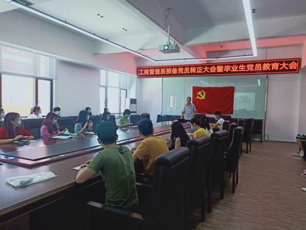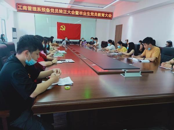2020614日,工商管理系第二党支部在梧塘校区行政楼中303开展工商管理系预备党员转正大会暨毕业生党员教育大会。
