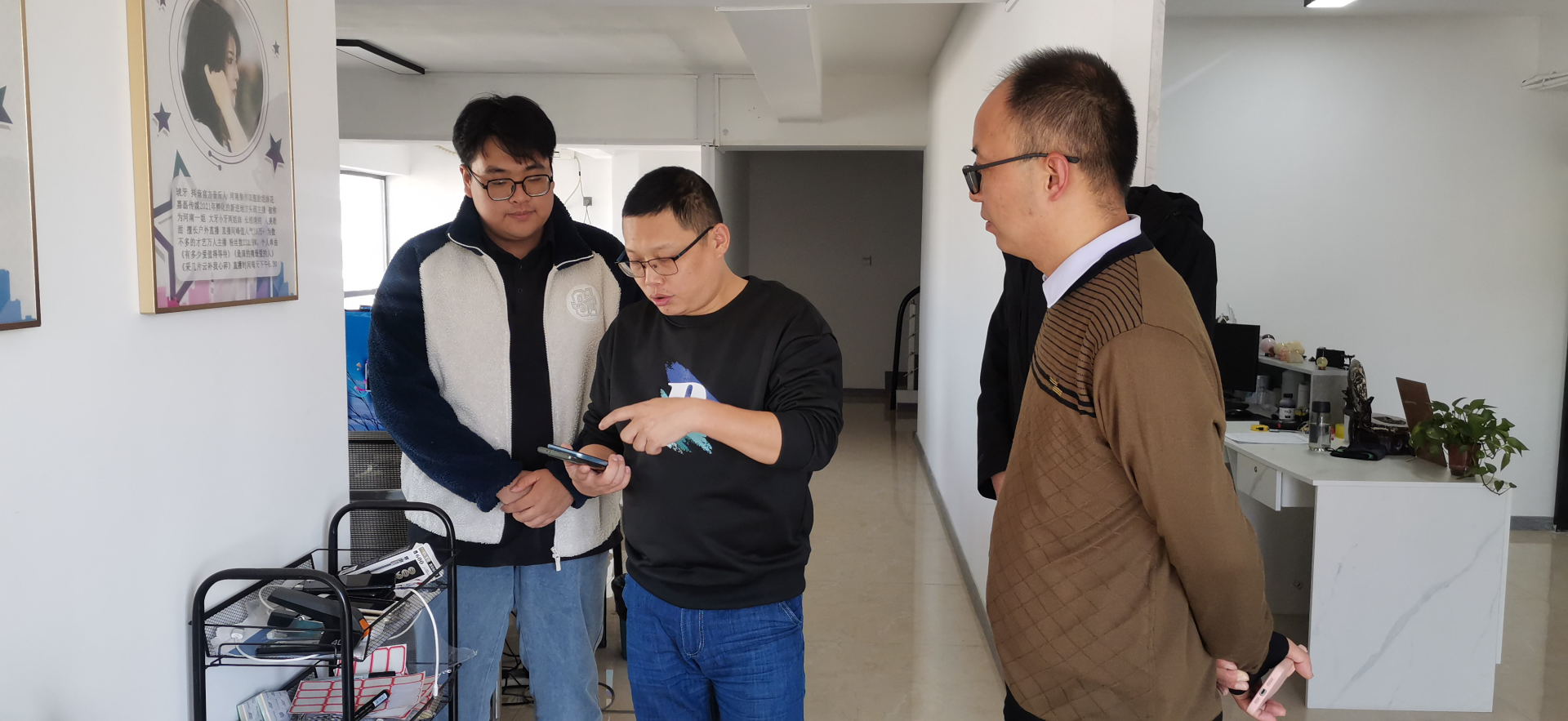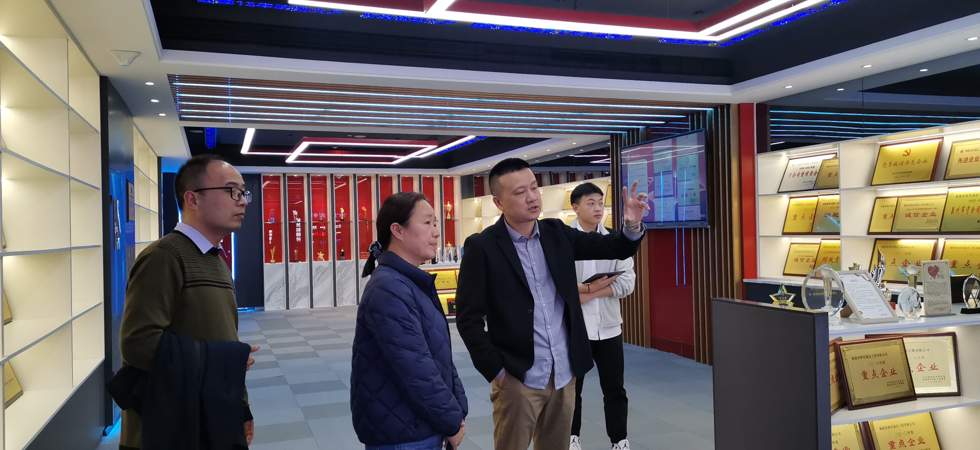 在鸿官通信,方丰霞主任一行在企业负责人及中小创2021级跟岗实训学生周利平的带领下先后参观了五鸿展厅、人才考评场地及未来家等,校企双方围绕人才需求、课程设置等进行深入的交流。在企业跟岗三个多月,校方能切实地感受到学生们跟岗实训前后的成长和变化。