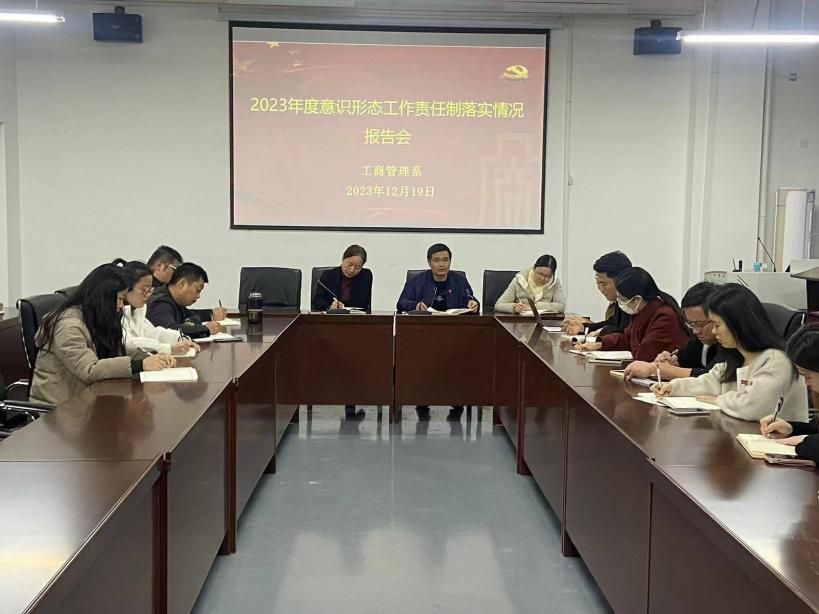 2023年12月19日,我系于工商楼301召开第四季度学生思想政治暨意识形态分析会。工商管理系党总支副书记许志敏、副主任方丰霞、系部领导、系部辅导员以及学生代表参加了本次会议,会议由许志敏主持。