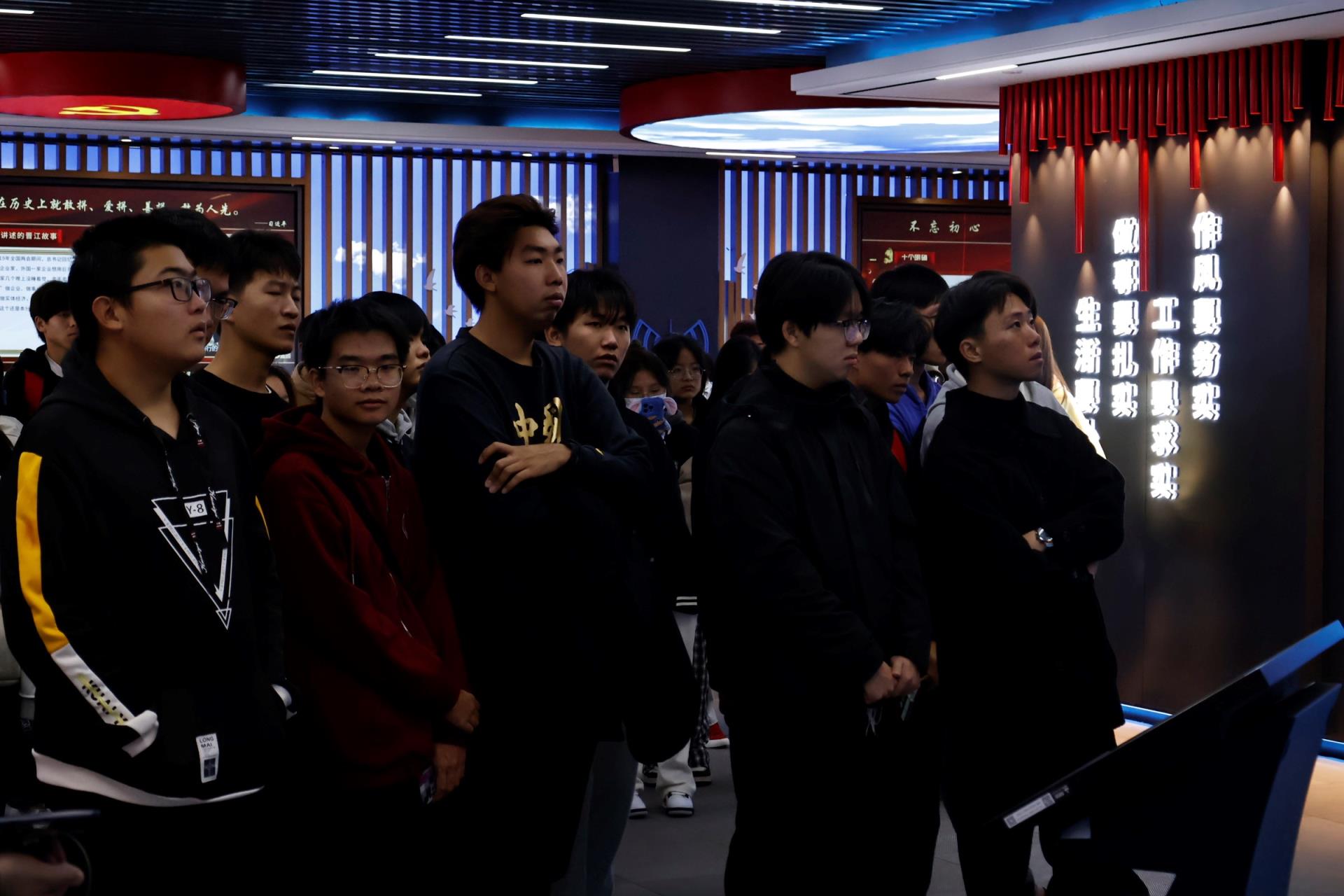 以文化入企业,鸿官通信公司负责人先从党建文化开始介绍自己的企业,以中国共产党的领导为导向,向学生们介绍公司的文化建设基础——以红色文化为准则的新时代文化,文化自信才是企业自信,映射于人,文化自信也是个人自信,深入了解企业文化,了解自身不足,促进学生上进。