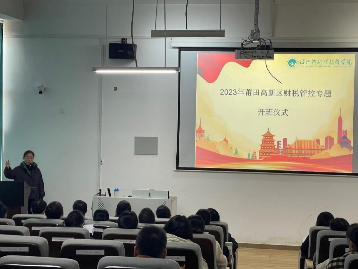 为深入学习贯彻党的二十大精神和习近平总书记关于加强财会监督的重要指示批示精神,由莆田高新技术产业开发区,湄洲湾职业技术学院联合开展财税管控专题培训班,于20231226日、27日在湄洲湾职业技术学院工商管理系开展,参加此次活动的培训对象有莆田市涵江区涵东、涵西、赤港、江口、三江口、国欢和梧塘等乡镇企业的财务人员。