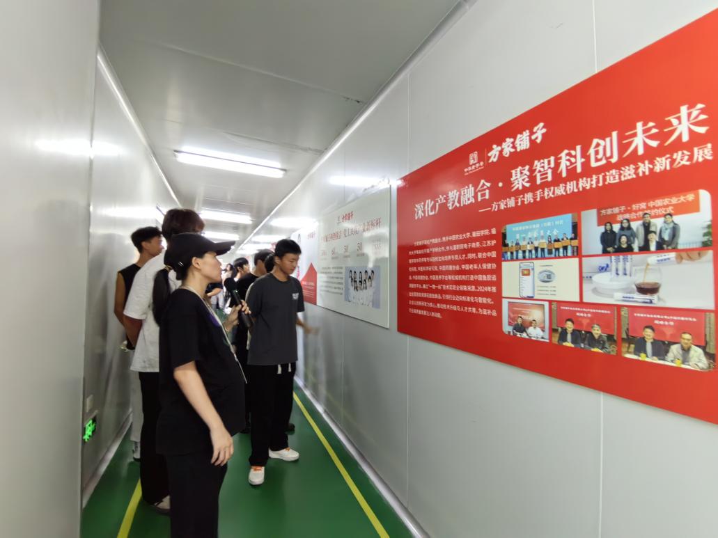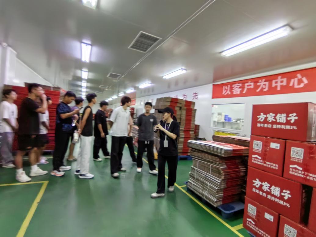 师生们先了解产业园全景概况,随后走进车间,近距离观察食品生产作业流程,直观感受现代食品工业高效规范的运作。在实验室,大家看到了先进的检测仪器与严谨的检测流程,蔡经理强调产品质量是企业根本,让同学们对 “以客户为中心” 理念有了更深的认知。在企业文化长廊,同学们看到了企业的发展历程介绍,感叹经营企业的不易,领悟到企业需要持续创新,紧跟时代步伐,不断推出更符合消费者需求的产品,才能在市场竞争中站稳脚跟。