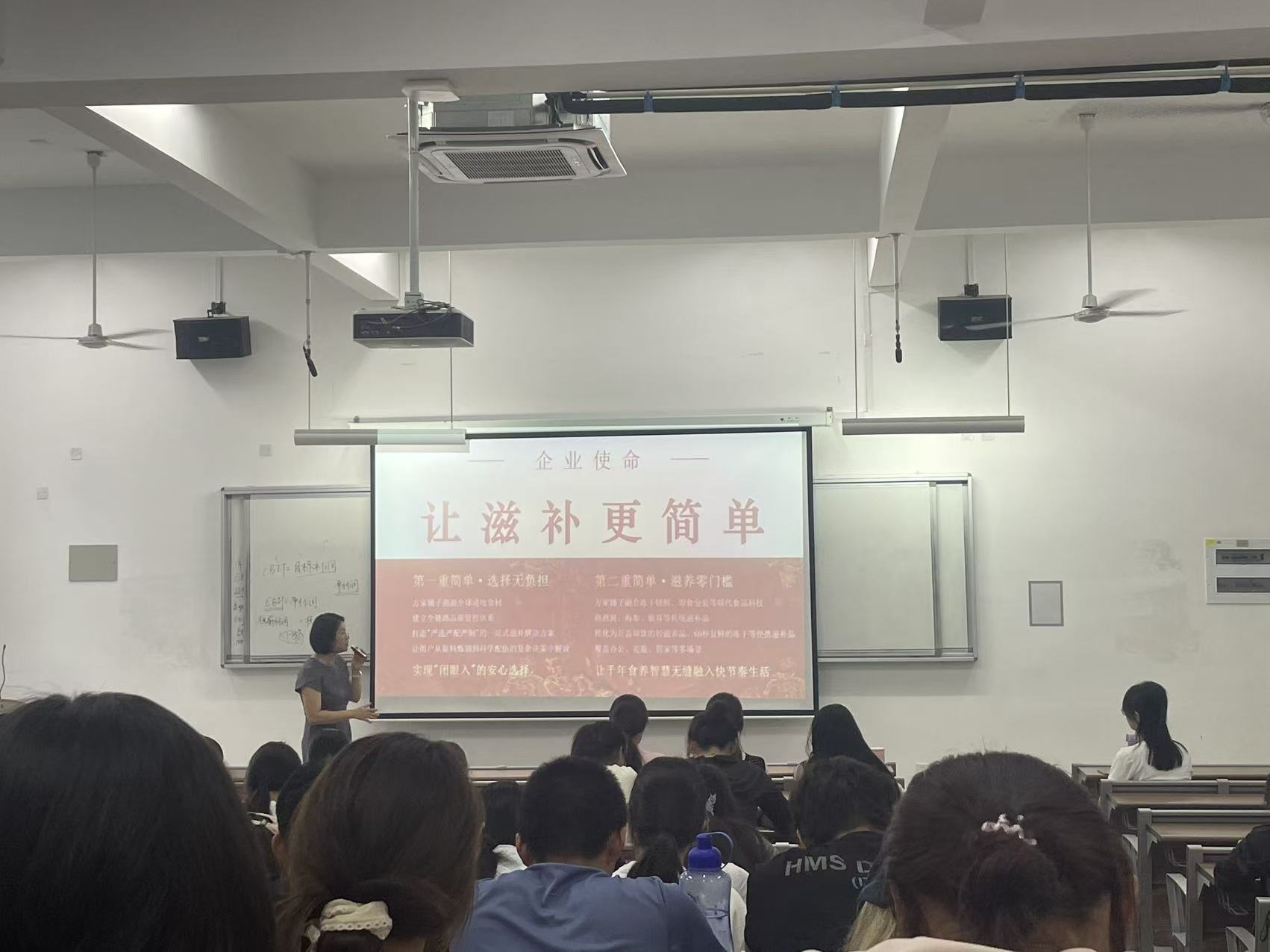 陈晶晶经理围绕健康食品赛道的“黄金时代”、一家百年老店的“长期主义”、打造你的“T型人才”配方三个方面进行分享。她指出,现代企业更需要“T型人才”——既具备扎实的专业基础,又拥有跨领域的实践能力。围绕大学生成长路径,她提出“大一打基础、大二练技能、大三定方向、谋发展”的阶段性建议,鼓励学生尽早接触行业、掌握数据分析与内容创作等实用技能,并推荐了多种AI工具与经典书目,助力学生提升综合竞争力。