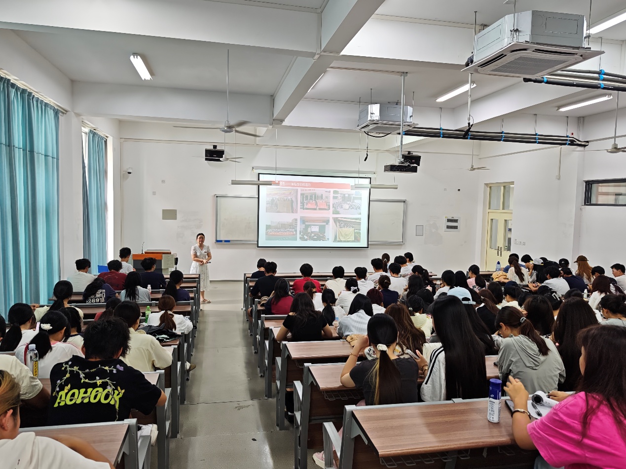 最后,黄老师寄语新生要做到“四个学会”——学会做人、学会做事、学会自省、学会生活,并提出“三个做到”:保持灿烂笑容与进取心态、认真投入课堂学习、积极参与体育锻炼与社会实践。她以“只要你迈步,路就在脚下延伸;只要你扬帆,便会有八面来风”鼓励学生珍惜大学时光,追求全面发展。