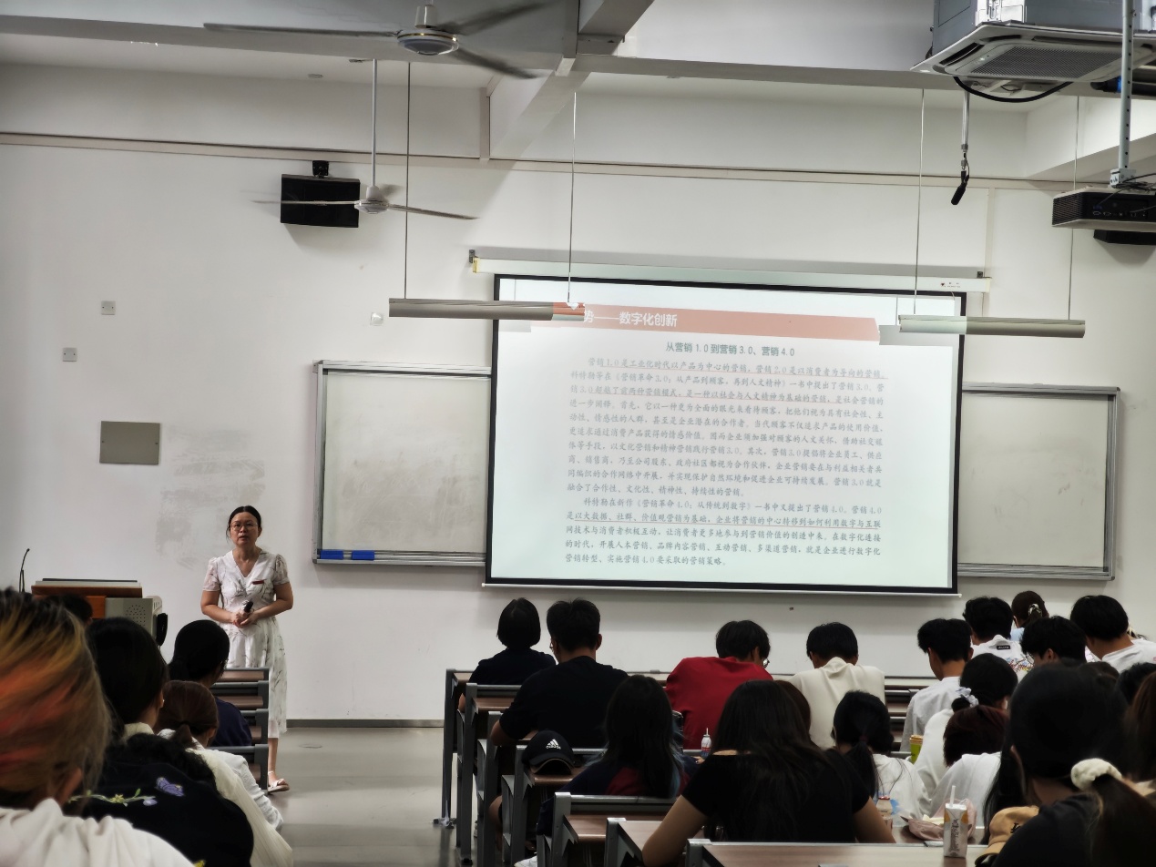 黄老师指出,市场营销绝非简单的“卖货”,而是一个涵盖市场调研、消费洞察、产品定位、渠道布局、品牌传播等环节的科学体系。她通过案例生动阐释了现代营销“科学+艺术”的双重属性,并强调在数字化时代背景下,营销已进入以大数据、社群和价值观营销为基础的4.0阶段,对人才能力提出更高要求。