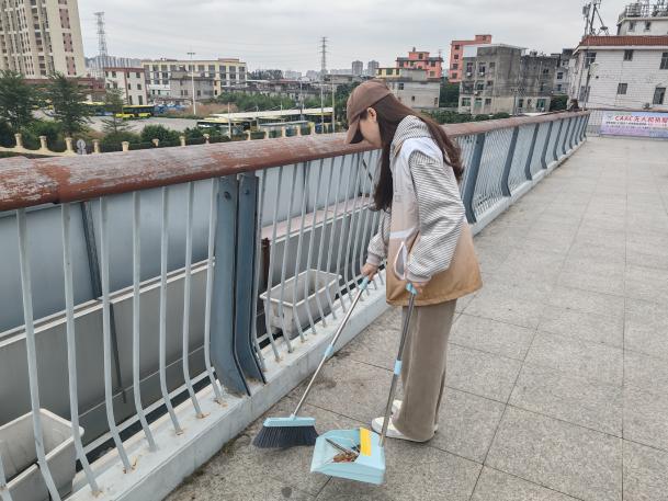 为进一步强化学生环保责任感,助力营造干净舒心的校园周边出行环境,2025年11月18日下午,工商管理系组织志愿服务清扫小组,于湄职院天桥开展卫生清扫行动,工商管理系24级、25级部分同学积极参与其中。