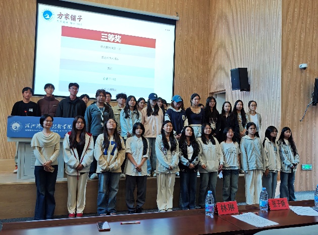 为了增强同学们的团结意识和营销实践能力,表彰“湄职院&方家铺子‘臻补杯’品牌营销大赛”中表现优异的同学,工商管理系于11月25日下午在学前楼1楼报告厅举行了表彰大会。参与本次表彰大会的有方家铺子品牌总监林琳、人事经理张子娟、拍摄助理朱锫锬和市场营销专业主任朱晓宇老师、专任教师林欣欣老师,筑梦营销协会全体工作人员以及所有参赛选手。