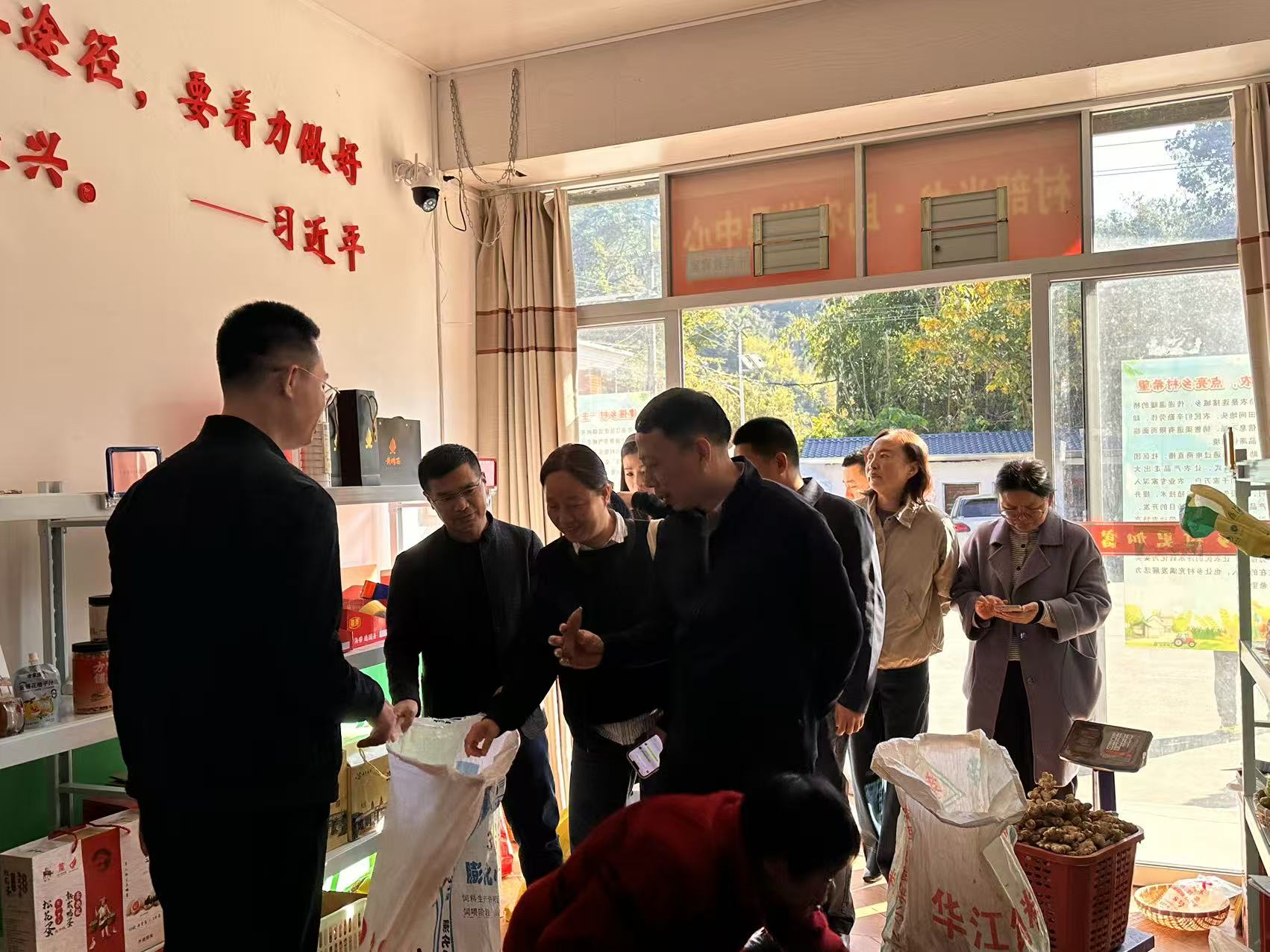 接着活动重心转向乡村振兴一线实践。党员们到尚书桥村委会开展实地调研。在村支书的带领下,大家参观了村部尚书.助农优品中心的产品展示区、以及颇具特色的村干部助农直播间,详细了解了当地网红村支书依托特色资源,探索“农业+旅游”、蔬果土特产直播带货等多元化发展模式的具体实践。