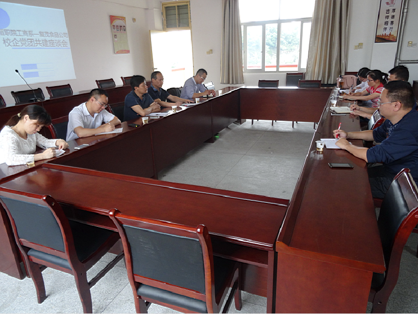 5月25日下午,我院与福建复茂食品有限公司校企党团共建座谈会在工商楼401室举行。我院党总支书记陈凯、党总支副书记陈志君、第二党支部书记杨剑辉、分团委书记杨扬与福建复茂食品有限公司顾问老师兼人力资源部副总邹飞、工会主席凌光荣、团书记陈城、人力资源经理郭高明、“英才计划”班主任李巧娟参加座谈会。