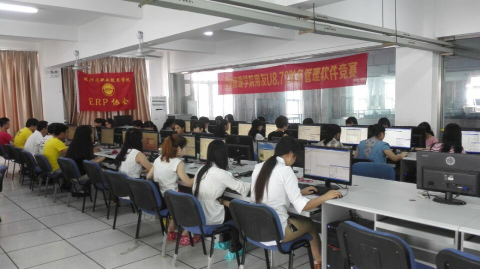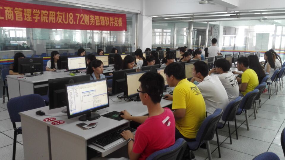 5月23日,由ERP协会主办的用友U8.72财务管理软件竞赛在实训楼五楼ERP实训室举行。特邀ERP指导老师谢双双担任评委,另有我院副主任刘伟现场观摩比赛。
