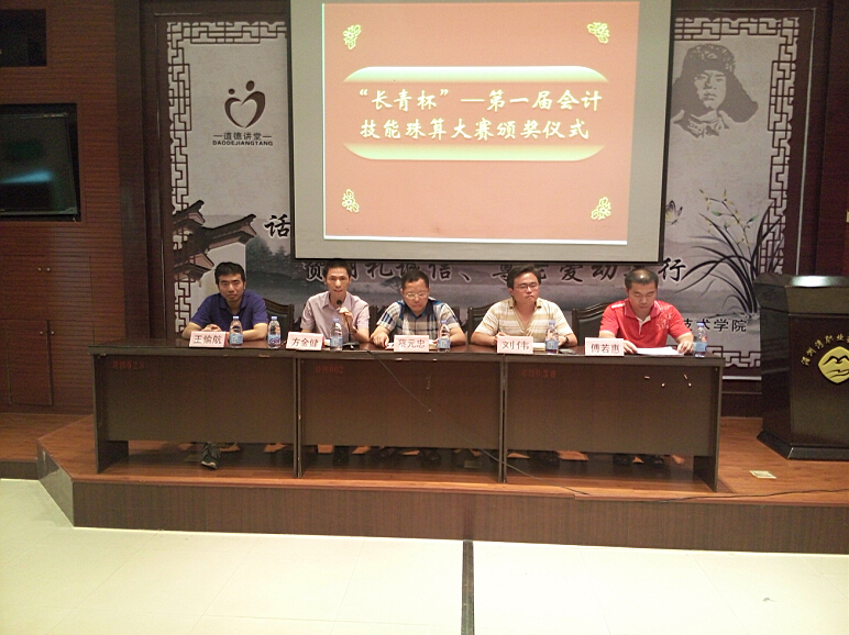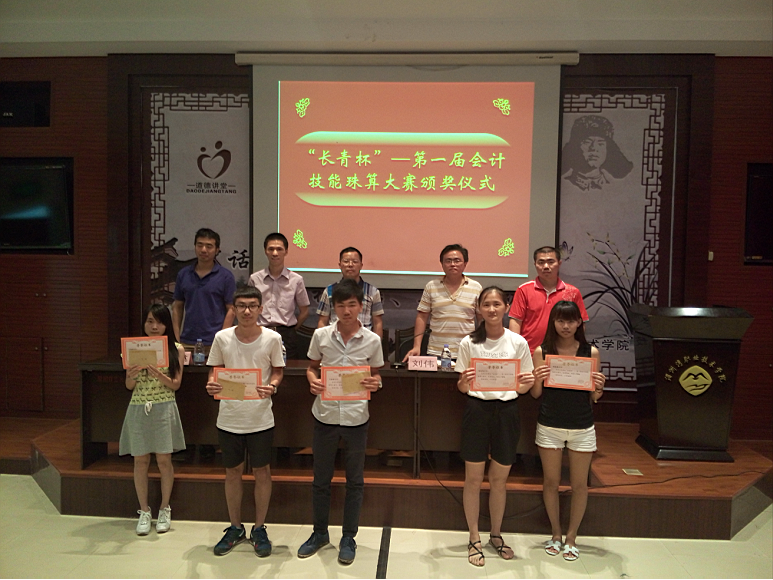 启航会计协会与长青培训机构合作的第一届“长青杯”会计技能珠算大赛于6月11日下午在图书馆一层学术报告中心室进行颁奖仪式。长青培训机构副总方金健与工商系主任蔡元忠、会计教研室主任傅若惠、实训中心主任王愉航以及获奖人员出席颁奖仪式。