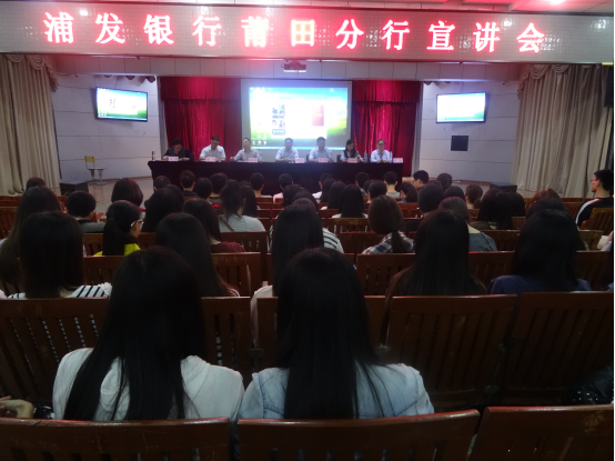 2015年11月9号,浦发银行莆田分行宣讲会在17号楼201室召开,出席本次宣讲会的有:上海浦东发展银行莆田分行行长陈海清、办公室主任陈一强、业务管理部总经理吴赛琴、员工黄愉,我院主任蔡元忠、副主任刘伟、党总支书记陈凯、会计教研室主任傅若惠。刘伟副主任担任此次宣讲会主持人。
