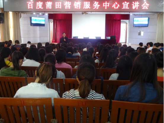 11月26日下午,百度营销服务中心莆田分公司来我院举行宣讲会。出席会议的有该公司大区总监林为冇,我院副主任方丰霞老师,辅导员杨扬。