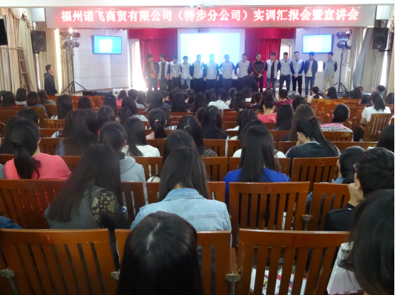 2015年12月2日,福州诺飞商贸有限公司(特步分公司)实训汇报会暨宣讲会在17号楼201室举行,参加会议的有特步人力资源经理陈美桃、特步零售经理林超敬、我院副主任刘伟、营销教研室主任黄智萌、分团委负责人陈丽晶以及我院14位特步实习生。