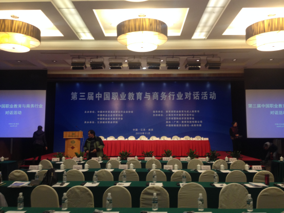 为贯彻落实全国职业教育工作会议和《国务院关于加快发展现代职业教育的决定》的精神,促进商务行业与职业教育有效对接,完善职业院校与我国商务行业的教产合作机制,提高商务行业人才培养质量,1126日至1129日,第三届中国职业教育与商务行业对话活动在南京国际会议中心酒店隆重召开。为进一步深化我院商务专业国际职业教育对接工作,建设优秀师资队伍,我院国际商务教研室的王立声老师参加此次会议进行调研。