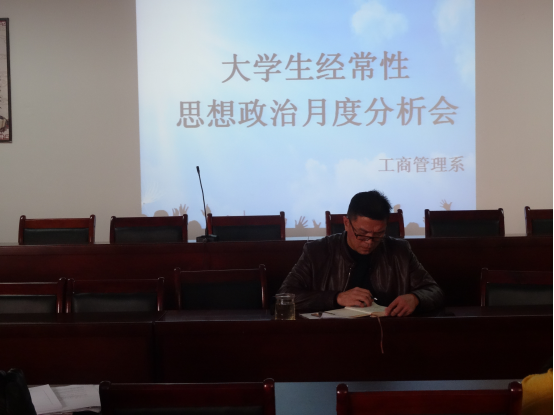 12月16日下午,我院在25号楼401室召开大学生经常性思想政治月度分析会。参加本次会议的有我院党总支书记陈凯,分团委负责人陈丽晶,辅导员:杨剑辉、黄慧芳、洪慧贞、杨扬、陈丽琴,社区辅导员:朱晴、王志挺。本次会议由陈凯书记主持。