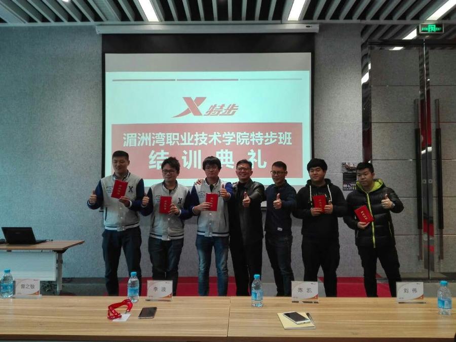 2016年1月13日,党总支书记陈凯、营销教研室主任黄智萌、团委负责人陈丽晶、教师郑慧仙等一行十人前往位于厦门的特步大学参加13级湄职院特步班学生的结训典礼。