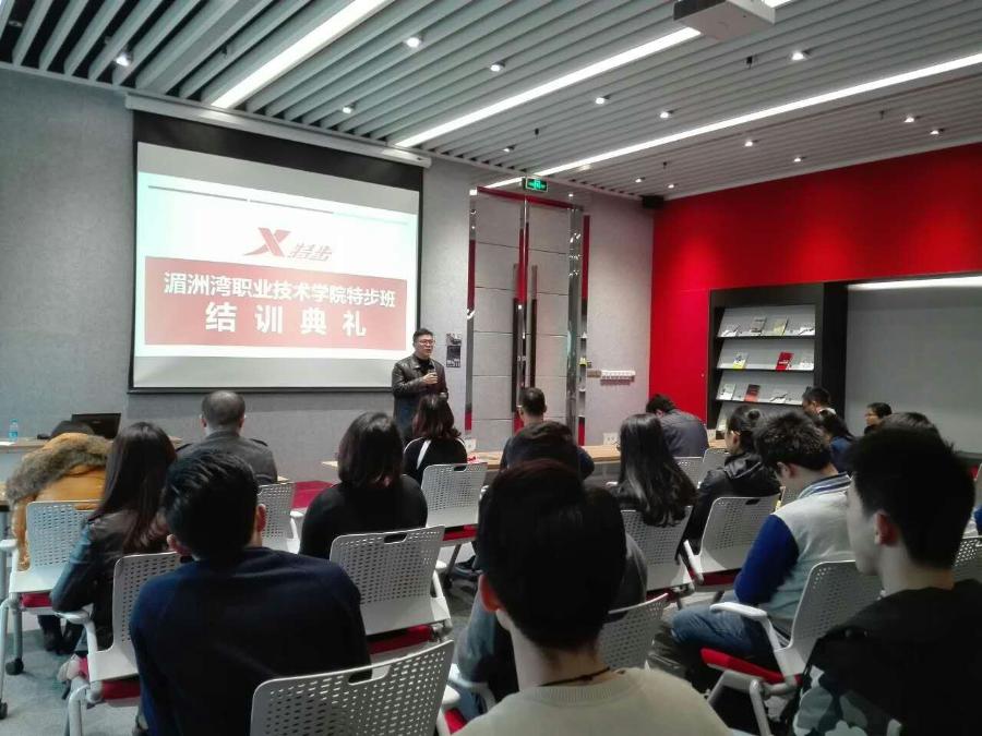 典礼开始前首先播放了一段本期福州特步班学生特辑,之后福州特步分公司曾之敏总经理对十四位学生的表现进行了点评,肯定了学生的精神风貌以及勤奋努力的工作态度。特步大学卓越零售学院李波总经理对下阶段的校企合作提出展望。陈凯书记最后发言,感谢特步集团为我们学生提供了这么好的实训机会和岗位,充分肯定了特步集团的人才培养方式和效果,并勉励学生们再接再厉不要辜负学校老师和公司领导的期望。随后,陈凯书记与李波总经理共同为十四位湄职院特步班学生颁发了结训证书并合影留念。
