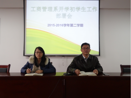 2月24日下午,我系在25号楼401室会议室召开了开学初学生工作部署会议。出席会议的有,党总支书记陈凯、工商分团委负责人陈丽晶,及各班班长与团支书。会议由陈凯书记主持。