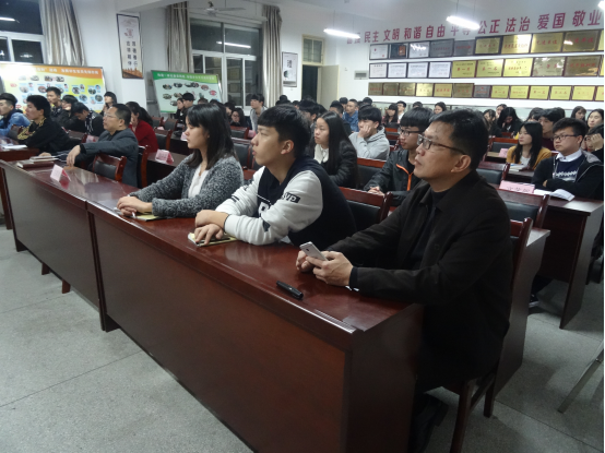 2016年3月28日晚上,我系在25号楼401教室举行以“孝”为主题的道德讲堂。出席活动的有:我系主任蔡元忠、党总支书记陈凯。讲堂由女生部部长林嘉婷主持。