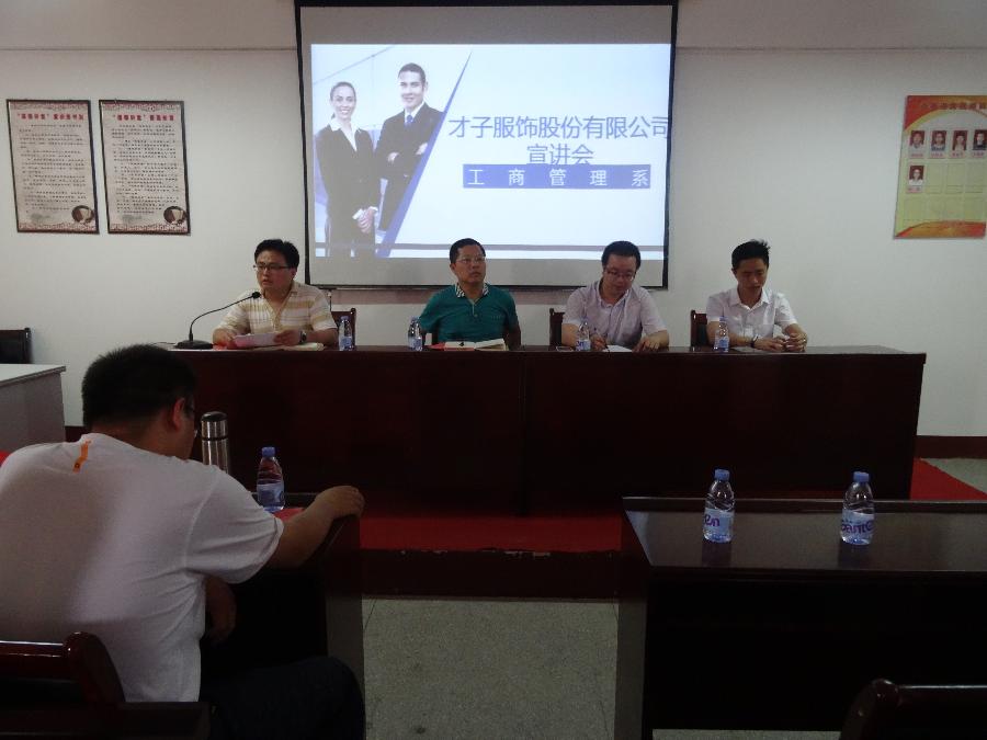 6月7号下午,我系在25号教学楼401室召开才子集团宣讲会。出席会议的有我院主任蔡元忠、营销教研室主任黄智萌、才子集团人才开发部经理罗伟东、才子集团管理中心总监黄志锋。