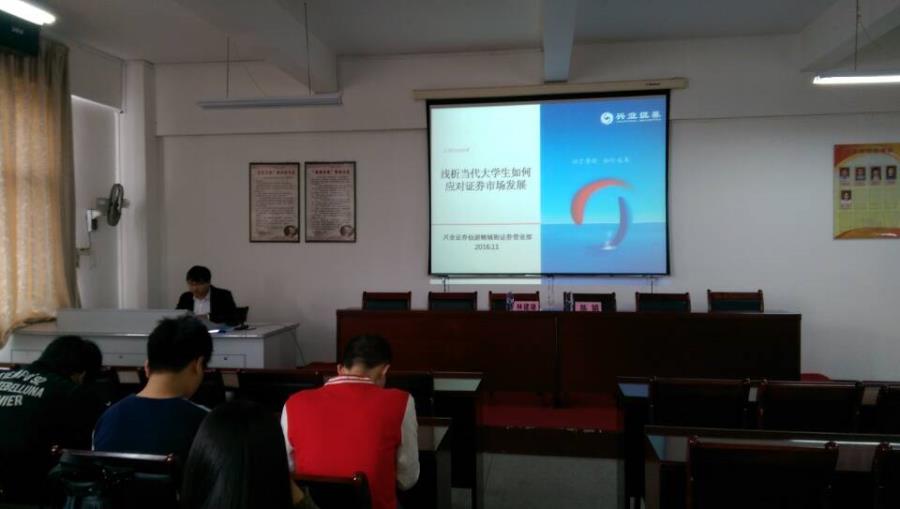 兴业证劵公司的理财顾问林建雄给同学们讲解浅析当代大学生如何应对证劵市场发展。在顾问林建雄的讲解下,让2014级的学生了解了关于会计专业的相关知识。