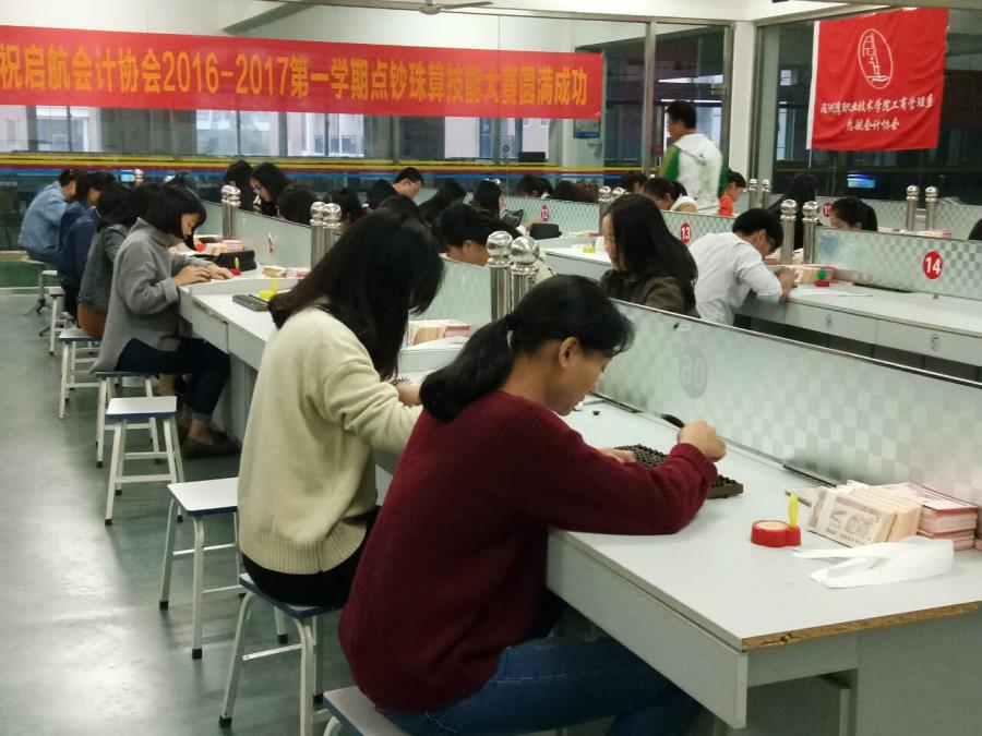 2016年12月5日-12月6日两个晚上,由工商管理系会计协会主办的点钞珠算技能大赛在实训楼5楼会计手工模拟室举行。本次比赛采用自由报名方式,参赛的有2015级和2016级的学生。