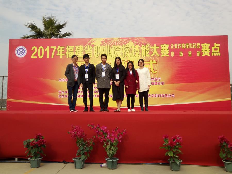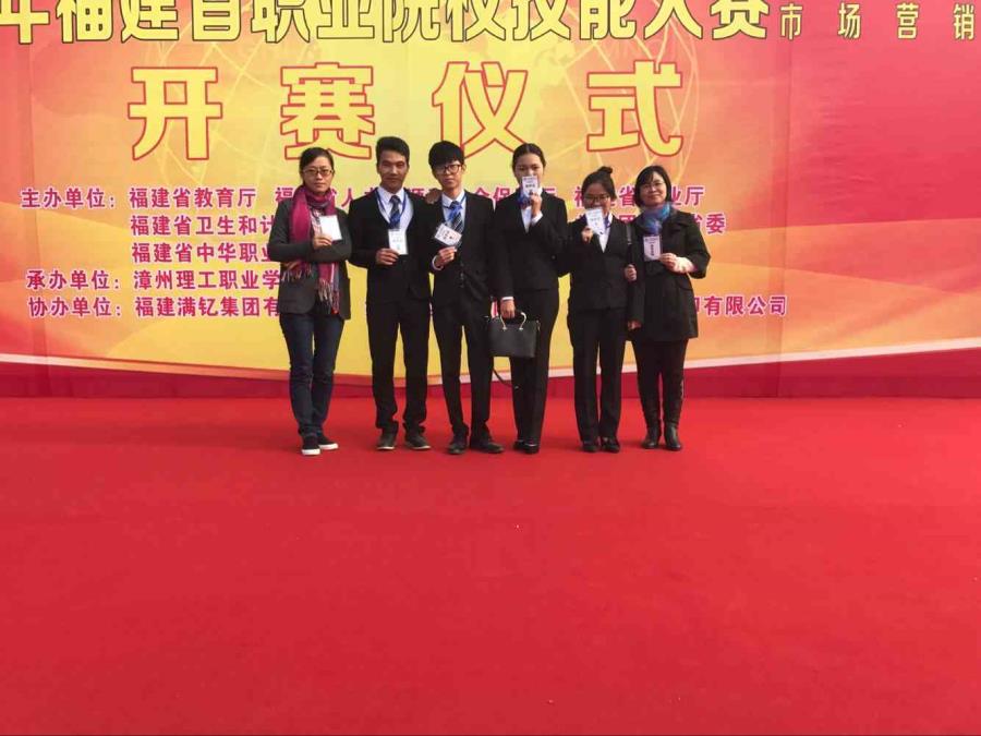 2016年12月7至12月8日,2017年福建省职业院校技能大赛“市场营销技能”项目在漳州理工学院隆重开赛。来自全省32所高职院校的代表队参加了此次比赛,我系曾玉叶(营销151)、胡嘉琛(营销152)、黄荣锋(营销152)、黄玉华(营销162)四位同学(指导老师:黄智萌、林欣欣)组成的学院代表队胆大心细、沉着冷静、奋勇拼搏,经过两天紧张激烈的角逐,顺利完成了市场营销技能各个具体项目的比赛,斩获“团体三等奖”。