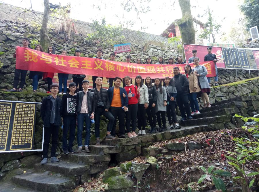 为弘扬社会主义核心价值观,2017年3月12日,我系分团委负责人陈丽晶老师和朱晓宇老师带领学生会成员前往莆田紫霄山举办“我与社会主义核心价值观共行”社会实践。