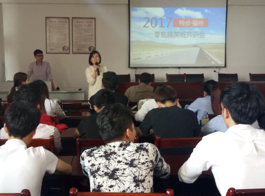 2017年4月7日下午,特步集团零售精英班开班仪式在25号楼401教室举行。我系营销教研主任黄智萌、陈丽晶老师和特步集团福州分公司人力主管林新军、人事经理阮珊珊以及15级市场营销专业全体同学出席了本次仪式。