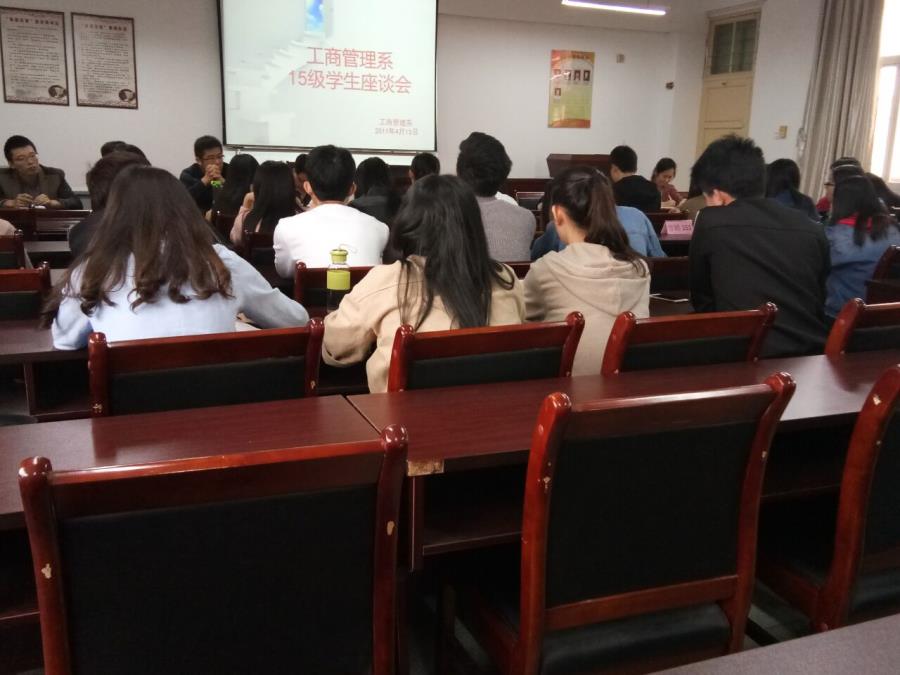 为了进一步了解我系即将离校的学生情况,4月13日下午,在25号楼401室召开15级学生座谈会。参与本次座谈会的有系党总支书记陈凯、副主任方丰霞、刘伟、会计教研室主任傅若惠、物流教研室主任徐建、市场营销教研室主任黄智萌、商务教研室主任李海铭、实训中心主任洪黎敏、15级辅导员王愉航、教学秘书潘少君、行政秘书朱晓宇以及我系15级各班班长、团总支、学习委员和学生代表。