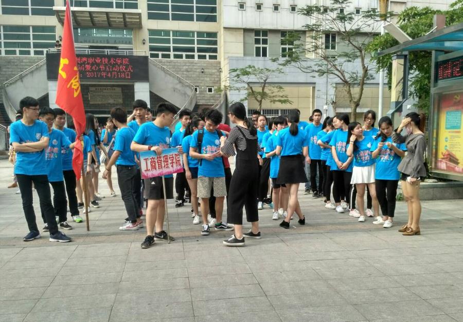 2017年4月18日,学院组织各系部各社团组织学生参加第四届爱心节活动,本次爱心节以“尽孝、行善、笃行”为主题,由院学工处、团委联合承办,学院副院长黄雅敏、学工处处长李智仁、团委书记任清华以及各院系分团委负责人、400余名学生共同参加。