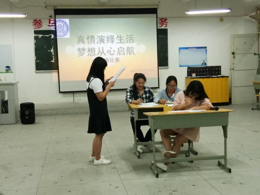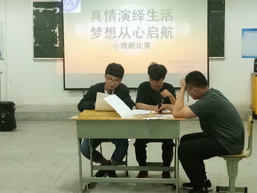 4月24日晚上7点,25号楼301室举行了“真情演绎生活,梦想从心启航”主题的心理剧比赛。此次比赛出席担任评委的有系党总支书记陈凯、15级辅导员王愉航、洪慧贞以及分团委负责人陈丽晶。参与比赛的是16级学生。