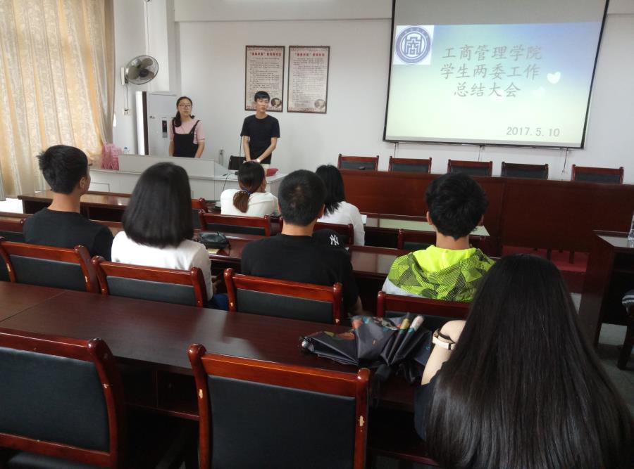 2017年5月10日下午4点20分在25号楼401会议室召开了两委工作总结大会。出席本次会议的有我系分团委负责人陈丽晶以及学生会干部。