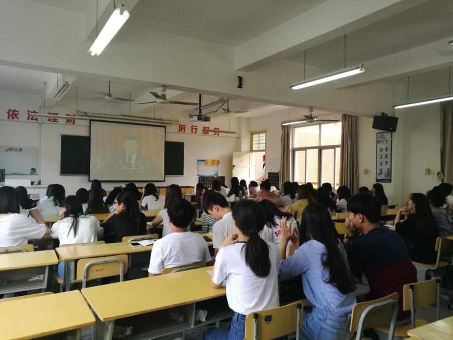 2017年10月18日上午9点,工商管理系党总支组织第一党支部和第二党支部成员在工商楼教室202观看十九大直播。出席会议的有黄智萌,潘少君,翁梦星,陈丽琴,陈丽晶,严溢涵等老师,以及工商系的学生党员和积极分子。