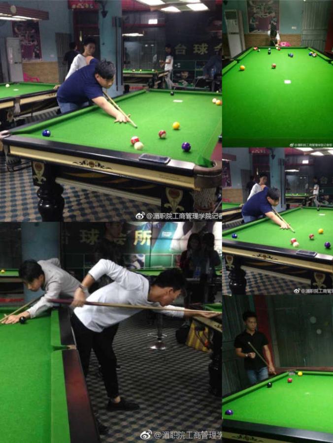 20171023日至1026日工商管理系17级新生沈锐、谢辉、季永然、吴雷琛、侯文村、韩振鹏参加新生台球赛。