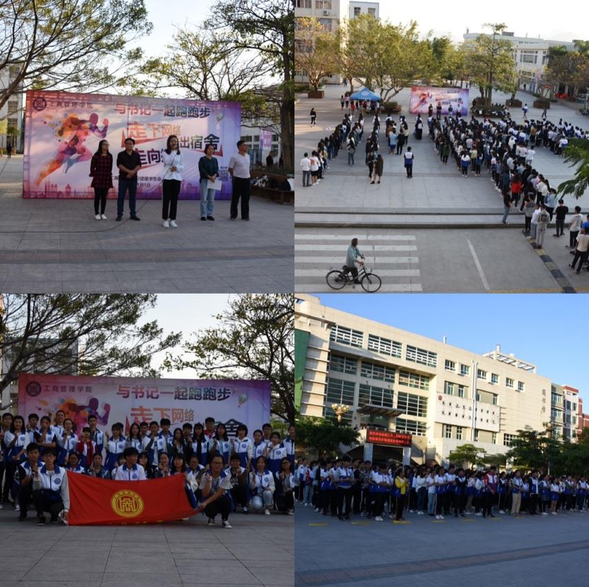 2017年11月1日下午4点30分在校园内举行与书记跑跑步活动的开幕式。出席本次活动的嘉宾老师有工商管理系党总支书记陈凯,主任方丰霞,分团委书记陈丽晶老师,学生会主席团代表及工商系所有成员。