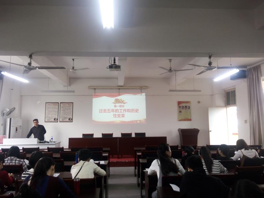 会上,陈凯书记强调了贯彻落实学习十九大精神的重要性,并分别从过去五年的工作和历史性变革、新时代中国共产党的历史使命、新时代中国特色社会主义思想和基本方略、决胜全面建成小康社会,开启全面建设社会主义现代化国家新征程、贯彻新发展理念建设现代化经济体系等十三个部分详细介绍了十九大的会议内容。全体教师认真学习了十九大会议精神。