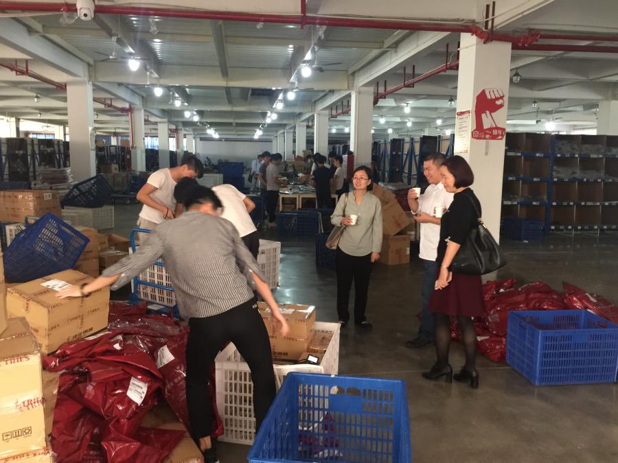 2017年11月14日,工商管理系主任方丰霞与工商管理系各教研室主任、实训中心主任一行人赴莆田才子服饰股份有限公司看望16级国商、电商和物流三个专业的综合实训同学们。