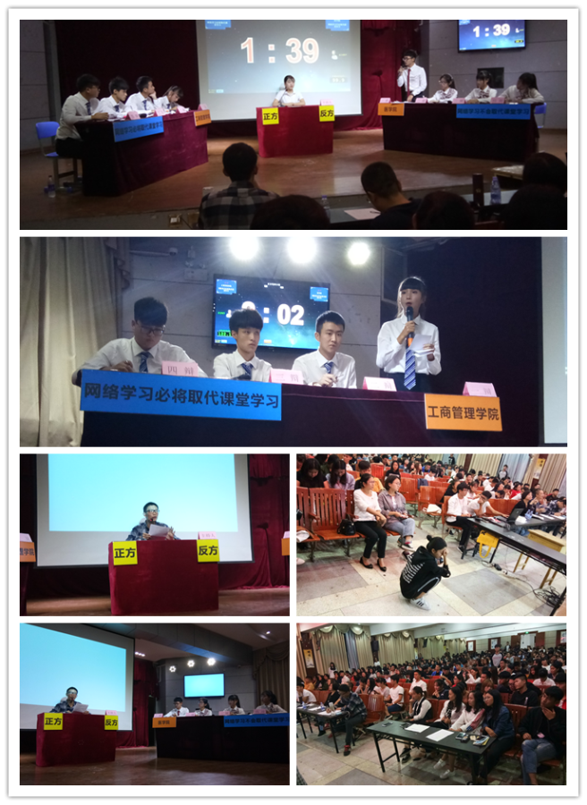 此次辩论赛评委由学院基础部文学教研室郑元清老师,学院关工委胡晓虹老师、学院团委副书记李超老师担任此次评委。比赛开始,辩题分别为“网络学习必将取代课堂学习”、“网络学习不会取代课堂学习”正反两方。赛上我系辩手们旁征博引,引经据典,你争我辩,妙语横生,进行了激烈的对决。整场比赛高潮迭起,集精彩纷呈,集思想性,逻辑性,明辨性于一体。反之对方辩手也毫不示弱,展开反扑之势。最后由学院团委副书记李超老师对本次比赛进行点评。时间如白驹过隙,辩论赛也因此止步于此。