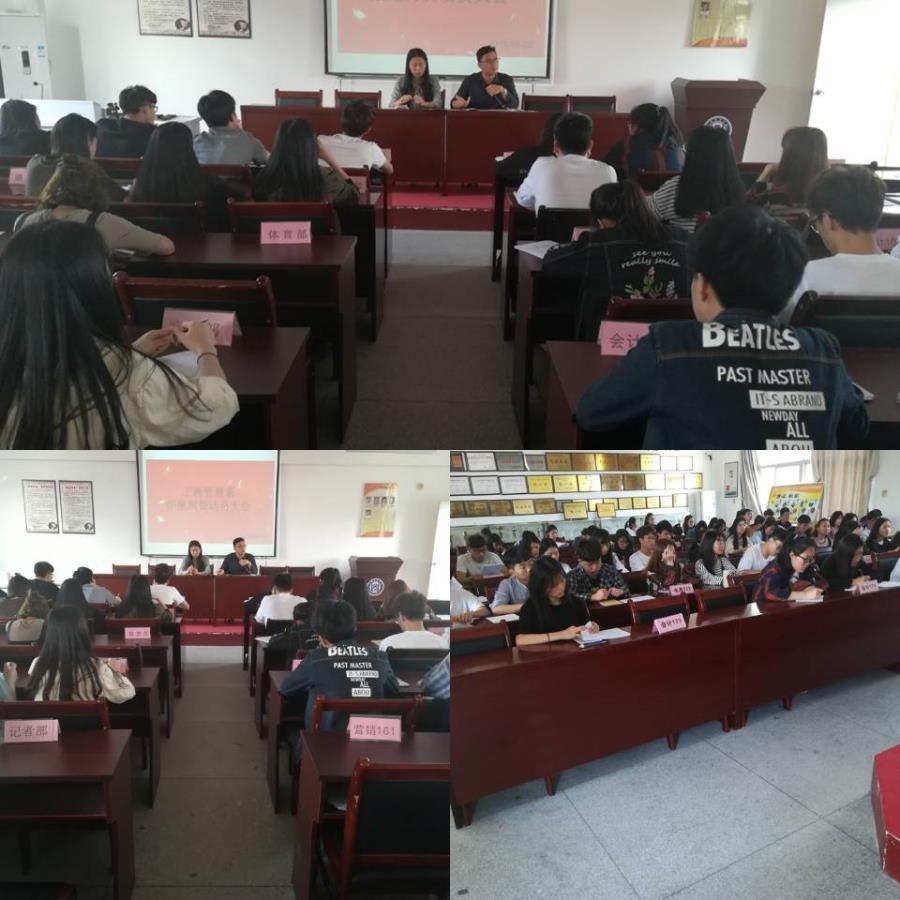 2018年4月2日工商管理系在401教室展开拒绝网贷,从我做起的活动,出席嘉宾有系党总支部书记陈凯,分团委书记陈延红以及16、17级学生会全体成员和各班班长团支书。