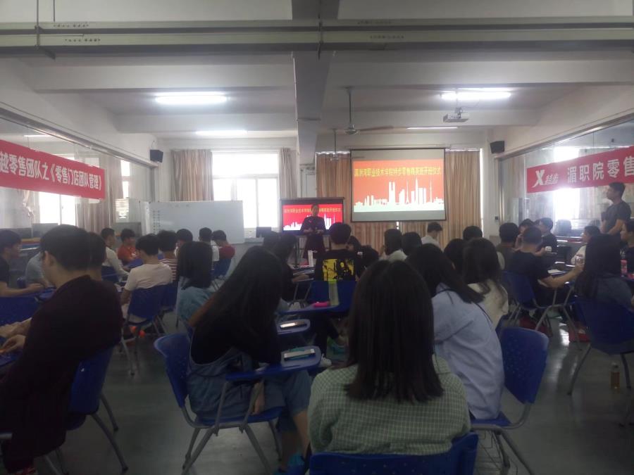 2018年4月18日,特步集团零售精英班开班仪式在工商管理系商务谈判室举行。本次培训课程的主题是“零售门店团队管理”。我系主任方丰霞、营销教研主任黄智萌、营销教研室全体教师和特步集团福州分公司人力主管林新军、培训讲师余李峰、助教朱丽仙以及16级市场营销专业全体同学出席了本次仪式。