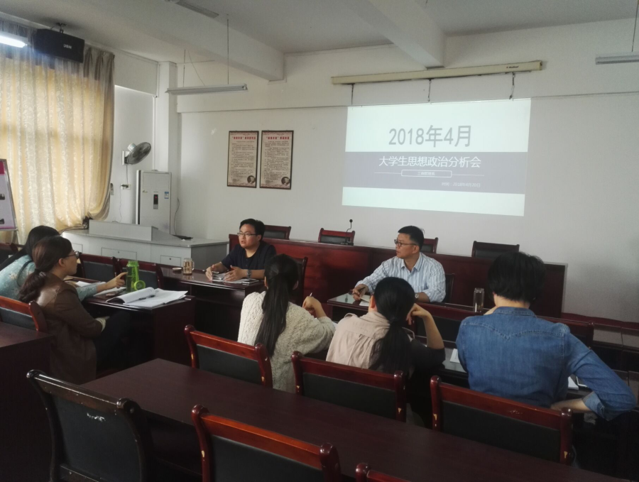 为了进一步了解我系学生思想状态,及时有效解决学生的思想政治及各种问题,4月20日上午10点我系在25号楼401室召开了大学生经常性思想政治分析会。本次出席会议的有工商管理系党总支书记陈凯、副主任刘伟以及5位辅导员。
