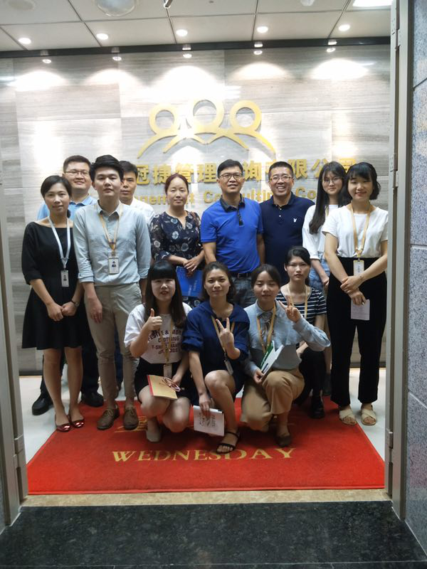为了加强对学生实习工作的管理,2018年5月23日星期三在系部的组织下,我系党总支书记陈凯、主任方丰霞、招生就业处副处长林燕清、会计教研室老师郑宗旭一起走访厦门众冠捷管理咨询有限公司实习单位一线的实习学生,带去了学校领导、老师对实习学生的关心和问候。
