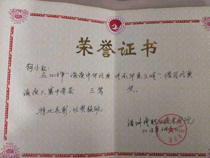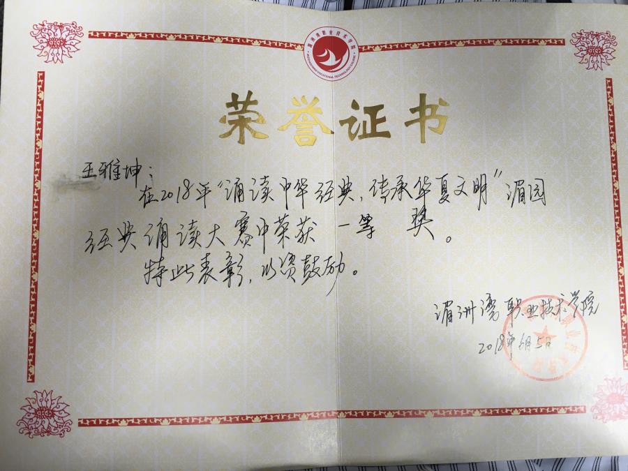 2018年6月6日“诵读中华经典 传承华夏文明”主题经典诵读大赛圆满结束。在本次比赛中,我系陈延红老师荣获“优秀指导教师”奖;工商管理系学生王雅坤荣获个人诵读“一等奖”,王心妍荣获团体诵读“一等奖”,杨青获个人诵读“二等奖”,柯小红荣获个人诵读“三等奖”,王婷、黄文金、林金祯、李舒烨、黄小钢等同学荣获团体“优秀奖”。本次诵读比赛为同学们提供了一个良好的沟通平台,展示了我校学生在台上的非凡风采。我系学生声情并茂的诵读、得体的肢体语言都令人佩服。我们在这里恭喜他们,希望工商系继续勇创佳绩。
