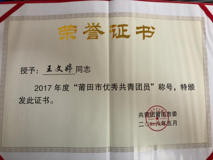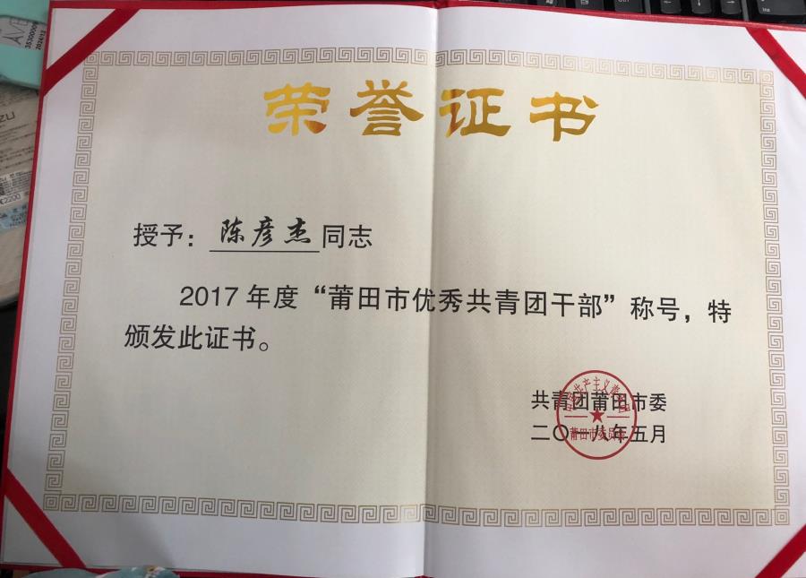 工商管理系物流161班陈彦杰同学荣获莆田市2017年度“优秀共青团干部”,财管161王文婷同学荣获莆田市2017年度“优秀共青团员”。让我们在此恭喜他们,也希望他们继续努力,再创佳绩。