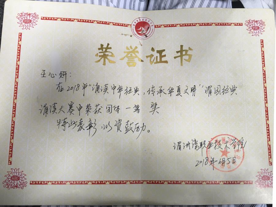 2018年6月6日“诵读中华经典 传承华夏文明”主题经典诵读大赛圆满结束。在本次比赛中,我系陈延红老师荣获“优秀指导教师”奖;工商管理系学生王雅坤荣获个人诵读“一等奖”,王心妍荣获团体诵读“一等奖”,杨青获个人诵读“二等奖”,柯小红荣获个人诵读“三等奖”,王婷、黄文金、林金祯、李舒烨、黄小钢等同学荣获团体“优秀奖”。本次诵读比赛为同学们提供了一个良好的沟通平台,展示了我校学生在台上的非凡风采。我系学生声情并茂的诵读、得体的肢体语言都令人佩服。我们在这里恭喜他们,希望工商系继续勇创佳绩。