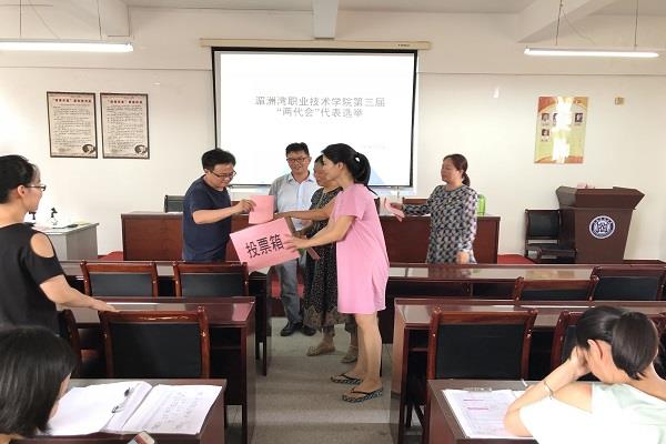 根据《中华人民共和国工会法》《中国工会章程》《福建省实施<学校教职工代表大会规定>办法》《湄洲湾职业技术学院教职工代表大会实施细则》等有关规定,工商管理系按照学院要求于2018年7月5日召开第三届“两代会”代表选举仪式。出席会议的有全体工商系教职工。